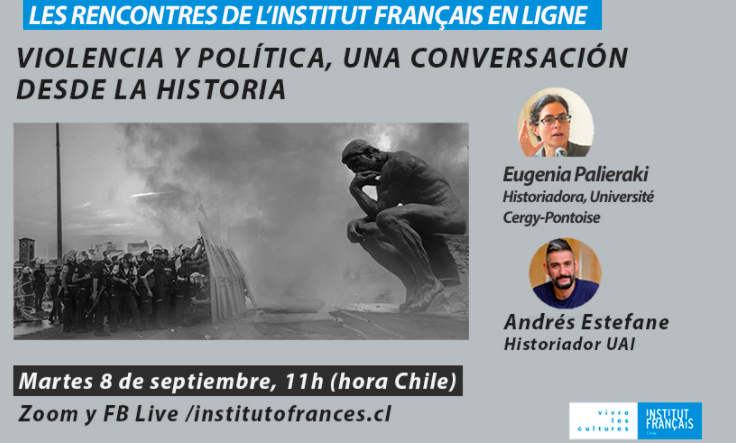 Los historiadores Eugenia Palieraki (Université Cergy-Pontoise) y Andrés Estefane (Universidad Adolfo Ibañez), dictarán la conferencia en línea VIOLENCIA Y POLÍTICA, UNA CONVERSACIÓN DESDE LA HISTORIA.